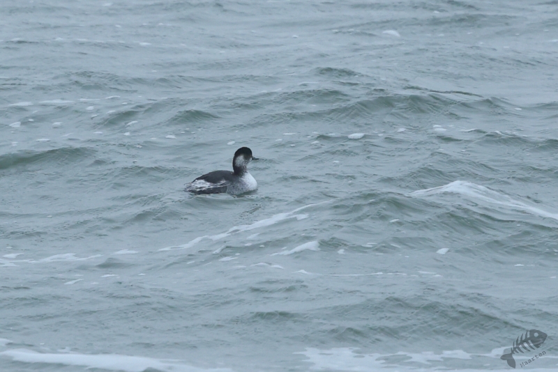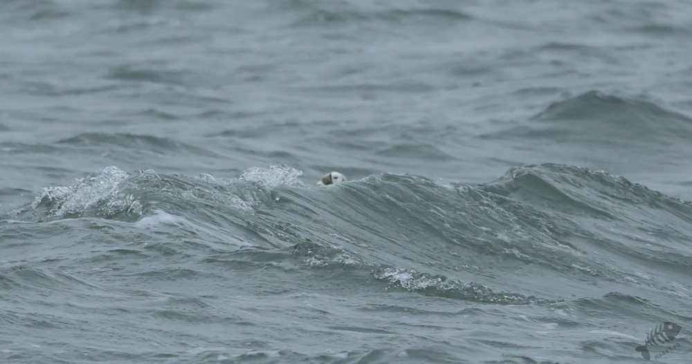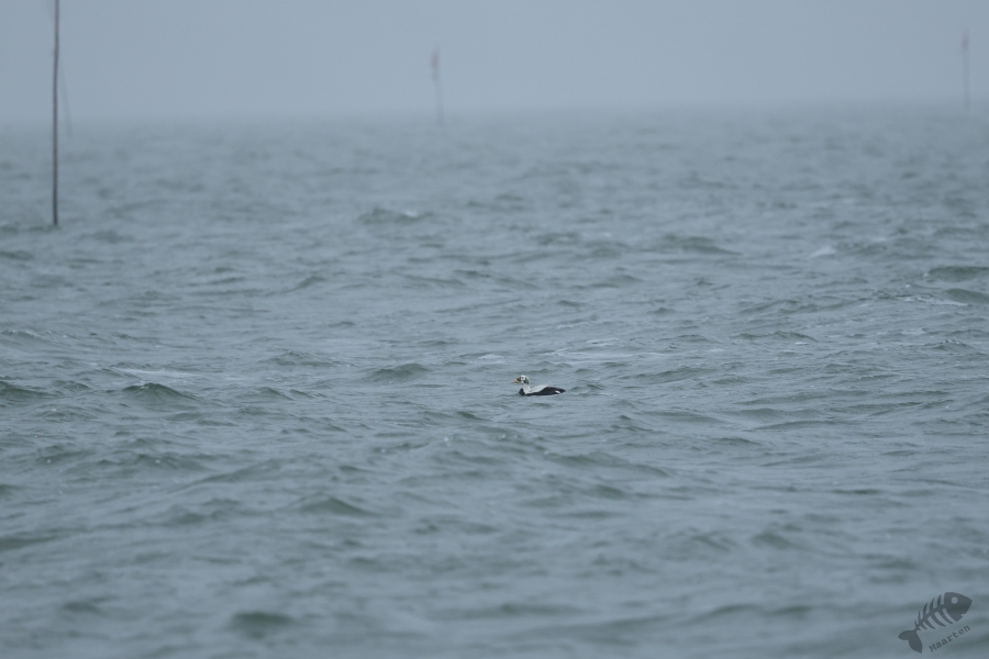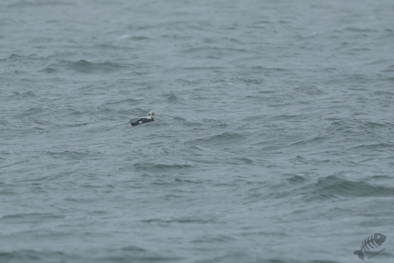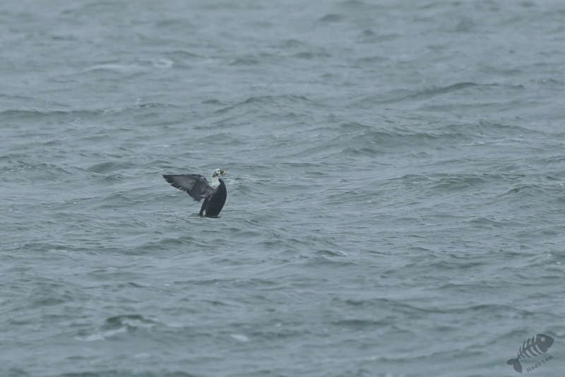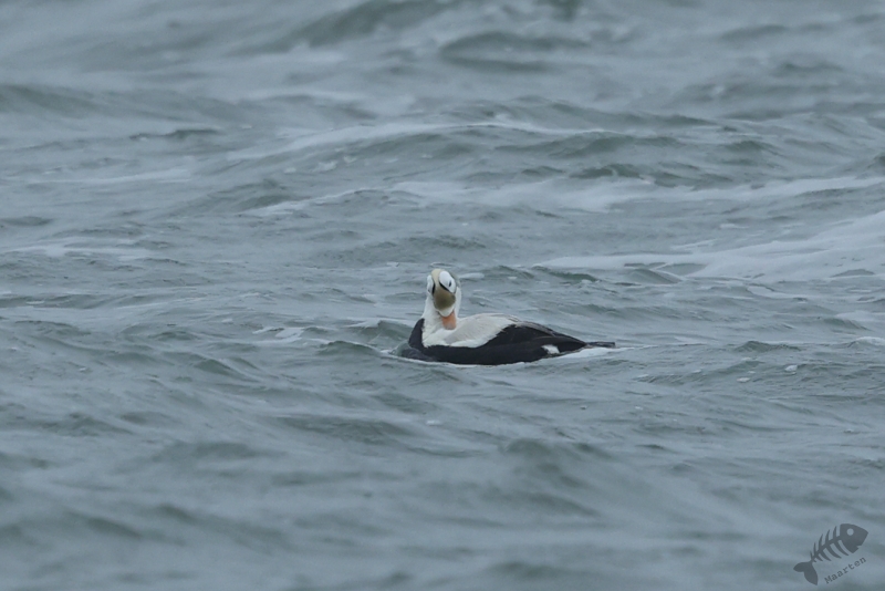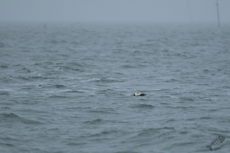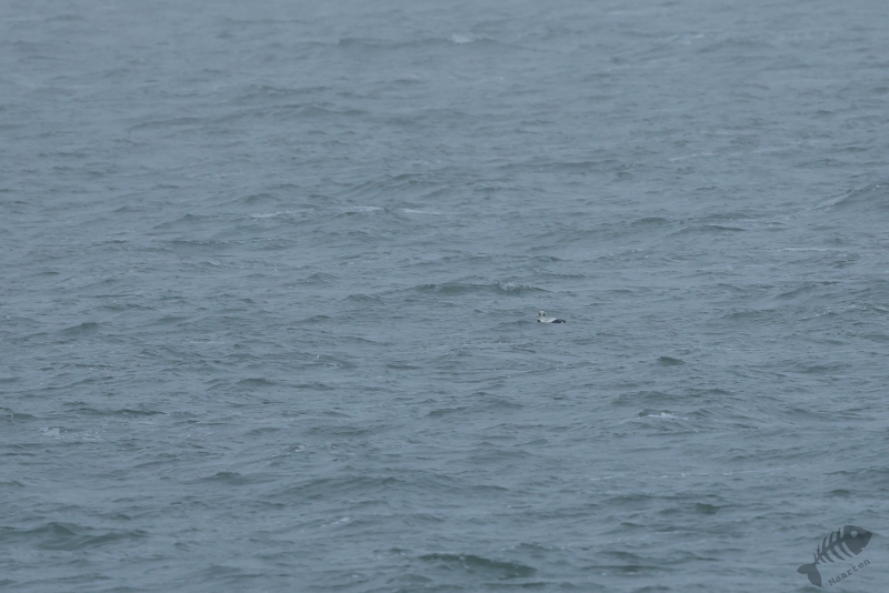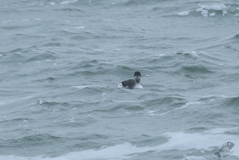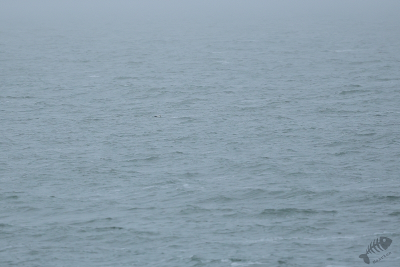 Even gestaag als toen hij dichterbij kwam, zo gestaag zwom hij ook weer verder de zee op. En zo verdween hij langzaam uit beeld en had ik 1½ uur kunnen genieten van dit heerlijke schouwspel. Het was koud, het waaide, het was redelijk donker en toch was dit een perfecte dag geweest. Wat wil je nog meer dan aan zee staan, de elementen te voelen terwijl je bezig bent een prachtige vogel te zien en fotograferen (die ook nog eens een enorme zeldzaamheid is)? Nou…