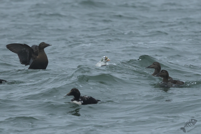 Om inspiratie op te doen, en om tijd te winnen aangezien ik niet heel vaak de gelegenheid heb om er opuit te gaan, kijk ik bijna dagelijks op waarneming.nl. Ook in het nieuwe jaar wierp ik regelmatig even een blik op de site waarop toch vaak mooie soorten genoteerd worden, maar waar ik dan niet voor in de auto stap. Totdat ik op 13 januari ook weer even ging kijken wat er die dag allemaal gezien was. Ik snelde het rijtje af, maar vrijwel direct werd mijn aandacht getrokken door een vogel die op 1 dag heel vaak weergegeven was. Toen ik de waarneming aanklikte en zag dat er 7 bladzijden waarnemingen van deze vogel op 1 dag waren, werd ik toch wel heel nieuwsgierig. Het bleek om een Brileider te gaan. Een soort Eider die voorkomt in de meest noordelijk gebieden van Alaska en Siberië en overwintert in de Beringzee. Dit exemplaar had dus wel een enorme afstand afgelegd om hier in de winter in de Waddenzee een bezoek te komen brengen aan ons land. Het bleek zelfs de 3de waarneming in Europa ooit te zijn, dus dit was wel een heel bijzondere waarneming. Hoe bijzonder en wat het teweegbrengt bij vogelend en twitchend Nederland, bleek wel uit een aantal stukken dat een aantal dagen later verscheen op Dutchbirding.nl. De volgende dagen bleek op waarneming.nl dat het steeds gekker werd. Het aantal bezoekers op Texel steeg enorm en het bleek dat het nieuws van de waarneming ook over de grenzen was gekomen. Vogelaars uit heel Europa kwamen naar het Waddeneiland om de bijzonderheid met eigen ogen te kunnen zien. Bezoekers uit België, Hongarije, Engeland, Spanje, Italië… Je kon het zo gek niet bedenken… De eerste dagen dat de Eider er zat had ik nog sterk het gevoel dat ik ook daar niet voor op pad zou moeten gaan. Maar elke dag keek ik weer even en de vogel bleef maar aanwezig en zo af-en-toe verschenen er prachtige foto’s van deze heel bijzondere vogel. Na een kleine week begon bij mij toch wel heel sterk de twijfel in te treden of ik er toch ook niet heen zou moeten gaan. De maandag, precies 1 week na de eerste waarneming, zou het droog zijn in het noorden van het land en was ik een dag vrij… Maar ja: het is wel een heel eind rijden en ik ben toch zeker geen soortenjager? Maar maandagochtend kwam en de twijfel was voorbij: jager of geen jager, ik kon deze prachtige vogel van 1 van mijn favoriete soortgroepen niet weer laten vertrekken voordat ik hem ook gezien had. Kortom: ik ging naar Texel!