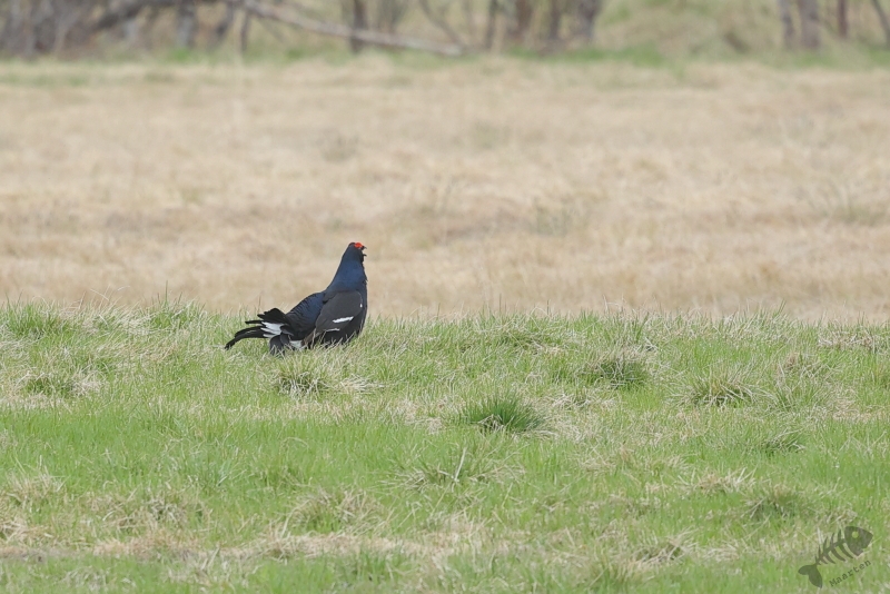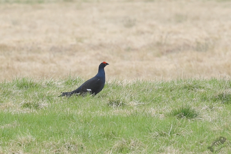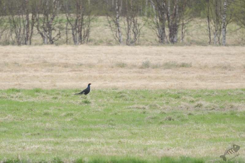 Nadat ik een kwartiertje gereden had, zag ik weer een zwarte vogel in een veld zitten en bedacht dat het wel weer een Kraai of Raaf zou zijn. Toch ben ik maar even gestopt om het goed te bekijken en ik ben erg blij dat ik dat gedaan had. Het bleek namelijk een Korhoen man te zijn! Deze had ik nog nooit gezien (en omdat ik dacht dat het eerdere vrouwtje een Auerhoen was, dacht ik dat dit mijn eerste sowieso was). het lukte om best wat aardige plaatjes te maken en de man liet zelfs heel licht baltsgedrag zien. Perfect! Achteraf denk ik dat die eerste “Kraai” ook wel eens een Korhoen kan zijn geweest, maar daar denk ik maar liever niet meer aan… Op een omgeploegde akker een klein stukje verder waren verschillende Stormmeeuwen en Kraaien (nu wel) aan het foerageren. Weer een kwartier verder vond ik weer een Brilduiker op een kleine plas. Deze zat een stukje dichterbij, dus kon ik eindelijk eens een behoorlijk plaatje van deze schitterende Eend maken. En dat hier!