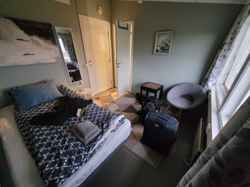 Ik heb geen stops meer gemaakt, zelfs niet bij de parkeerplaats met het mooie uitzicht op Varanger. Ik ben in 1 lijn doorgereden en kwam uiteindelijk om 11uur aan in Varangertunet. De eigenaars waren er al niet meer maar hadden me verteld waar ik de sleutels kon vinden, van een andere kamer deze keer, en ik heb snel m’n spullen uitgeladen en naar m’n kamer gebracht. Heel moe, maar zeer voldaan over deze dag, ben ik naar bed gegaan en viel al snel in slaap. En dat was maar goed: morgen moest ik weer aan de bak…
