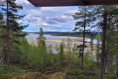De weg Pasvik in is heel mooi, zeker het eerste gedeelte. Hij voert langs een lang fjord, het Langfjord (what’s in a name…), met af en toe heel mooie uitzichten over dit fjord. Aan het einde buigt de weg weer iets af naar het oosten en voert door steeds bosrijker gebied, regelmatig meren (Vatnet) passerend. Op een gegeven moment, zo’n 15km ten noorden van Svanvik, bereikt de weg het Bjørnevatnet, een uitstulping van de Pasvikelva wat de grensrivier tussen Noorwegen en Rusland is. Ik ben de weg afgereden naar Svanvik waar het natuurcentrum/onderzoekscentrum van Bioforsk is. Ik herkende de gebouwen en het terrein, ondanks dat het er nu heel anders uitzag dan in 2017. Er stonden nog wat auto’s en er liepen redelijk wat mensen rond wat niet bevorderlijk was voor het aantal vogels. Deze zag ik dan ook niet… De birdfeeder was er nog wel, nu zelfs met een schuilhutje erbij (vorige keer stond ik half verscholen achter een muur in een flinke sneeuwbui), maar ook hier waren geen vogels te vinden. Ik ben daarop maar weer terug naar de auto gelopen en heb mijn weg verder vervolgd. Al snel kwam ik bij een 2de bekende plek: Svanvik Kirke, de houten kerk van Svanvik. Ook deze had ik de vorige keer al gezien, maar ook nu vond ik het meer dan de moeite waard er even voor te stoppen om er een foto van te maken.