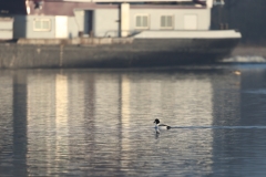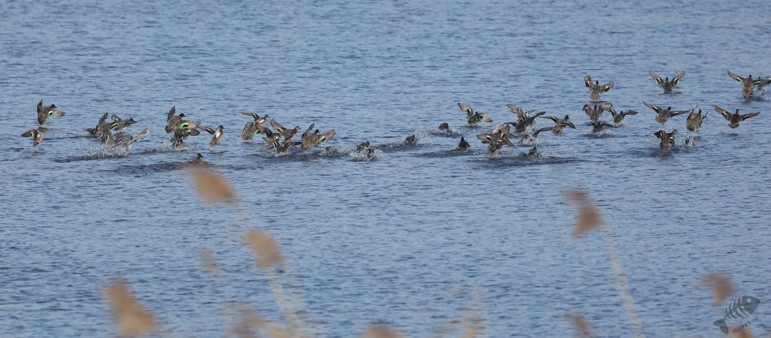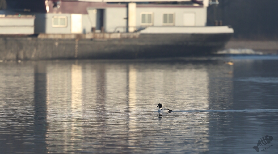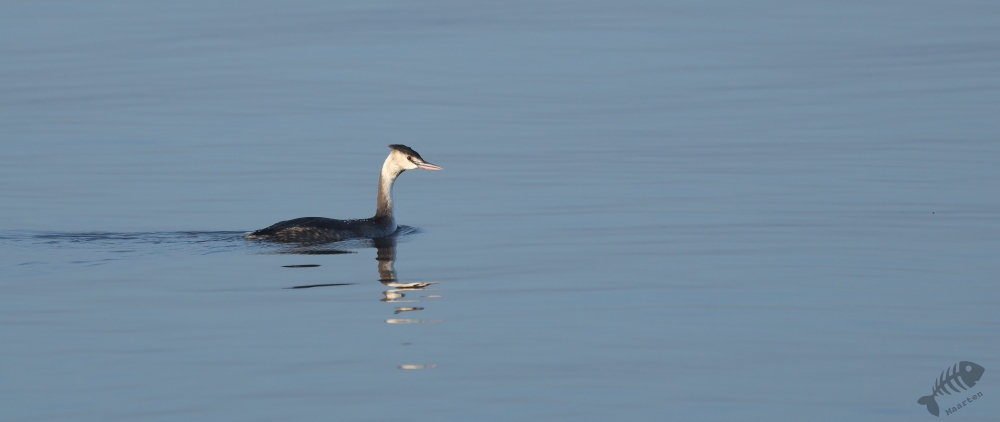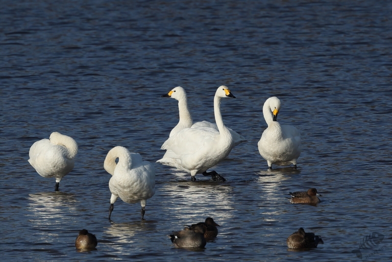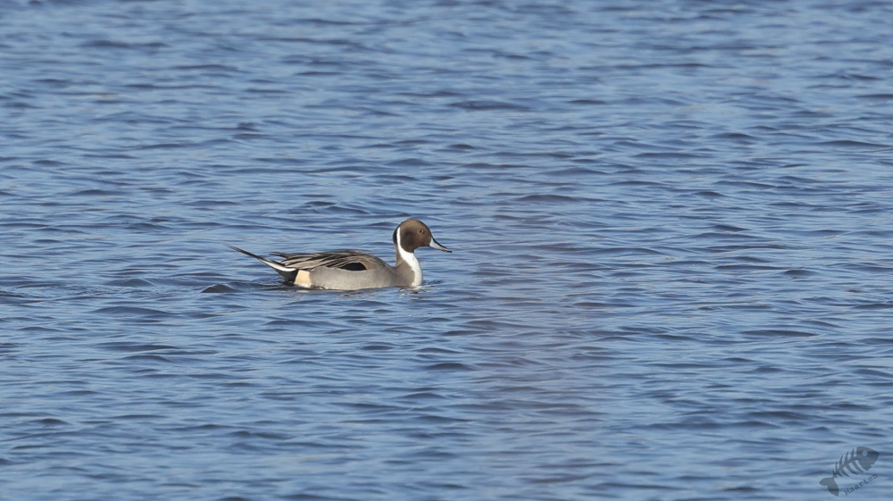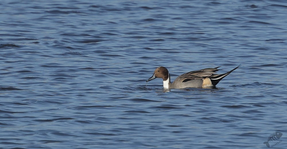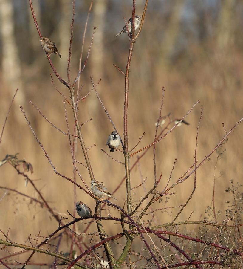 Al een aantal jaar zitten aan het begin van de Zeedijk interessante soorten zoals Nonnetjes en Pijlstaarten, maar vandaag zag ik alleen een woerd van deze laatste prachtige Eenden soort. Heel rustig heb ik toen de Zeedijk vervolgd en ben op het punt waar de weg naar rechts afbuigt en de Middelbeekweg wordt, het fietspad opgegaan en ben doorgereden tot het bredere water met de eilandjes. Daar zat een mooie groep Kleine Zwanen en kon ik in heel andere licht-omstandigheden foto’s maken van deze sierlijke vogels. Omdat verderop niet heel veel meer leek te zitten, ben ik weer omgedraaid en tot de boerderij voor het Putter Stoomgemaal gekomen. Het gekwetter van een grote groep Huismussen hield me staande en terwijl ik bezig was foto’s van de druktemakers te maken, besloot ik nog een keer hetzelfde stuk te gaan fietsen; ik was er nou toch… Waarom ik dit deed was eigenlijk maar met 1 reden: ik hoopte een Roerdomp te vinden. Omdat ik het riet aan de overkant afzocht, kreeg ik wel een Dodaars in beeld, een Grote Zilverreiger (die wel wat meer opvalt dan een Roerdomp) en een vrouwtje van de Grote Zaagbek. Geen Roerdompen dus… Aangekomen bij de eilanden ben ik nu wel weer wat veder gereden waardoor ik op een plek kwam waar grote aantallen Eenden zaten. Met name vond ik Wintertalingen en..: Pijlstaarten! Hier zaten er dus heel veel en tja, daar moet ik wel even de tijd voor nemen. Eigenlijk was de afstand voor écht mooi net te groot, maar toch was ik helemaal niet ontevreden met de foto’s die ik kon maken. De Pijlstaarten lieten zich op allerlei verschillende manieren goed zien waarbij er met regelmaat gegrondeld werd met de billen omhoog, waarbij de pijl-staart fier omhoog stak.