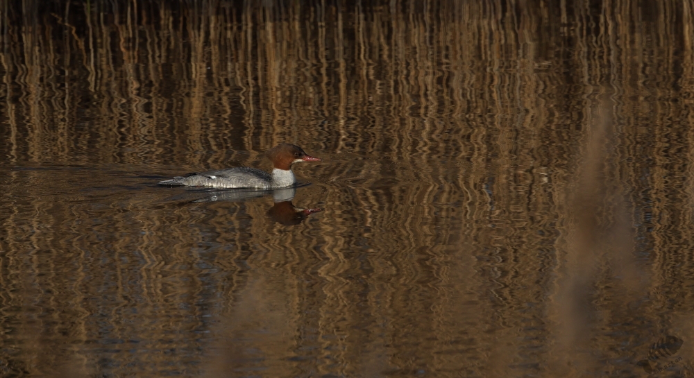 Ik had bedacht de oostkant van de Polder maar eens te gaan bezoeken en had besloten dit ook op de fiets te doen. Eigenlijk wel net zo makkelijk en zo kwam ik er ook. Voor de brug over de Arkervaart ben ik eerst rechtsaf geslagen om de Vaart te bekijken. Lang geleden had ik hier ook wel eens Nonnetjes en Zaagbekken getroffen, dus wie weet? Het was niet relaxed fietsen langs de weg. Heel regelmatig kwamen er auto’s voorbij en ruimte om dan aan de kant te gaan staan was er nauwelijks. Het eerste stukje ging nog wel en daar kon ik alweer een Torenvalk vastleggen. In de bocht bij de zuidkant van het eiland in de Vaart zat een aantal Krakeenden prachtig in het licht en met de bruine, ingetogen kleuren eromheen, kwamen zij prachtig tot hun recht. Na het maken van deze sfeerplaatjes ben ik doorgefietst tot het viaduct van de snelweg, nét voor industrieterrein Watergoor. Behalve heel veel Meerkoeten zat er niet zo heel veel, dus ben ik weer omgedraaid om bij de sluis rechtsaf te gaan, de Arkervaart over, naar de oostkant van de Polder.