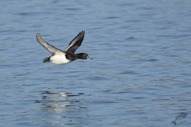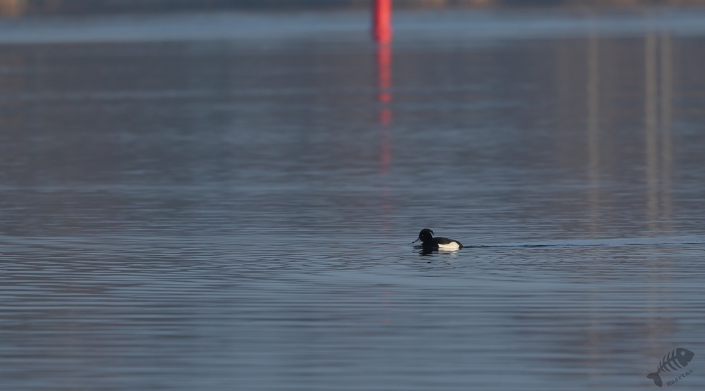 Vanuit Nijkerk ben ik rechtstreeks naar het Gemaal Hertog Reijnout gereden om daar de auto te parkeren en de rest van de dag op de fiets rond te rijden. Eerst heb ik natuurlijk het Nijkerkernauw afgezocht naar moois. En waar ik op hoopte, kwam ook uit: er zwom een prachtige Brilduiker rond waar ik natuurlijk de nodige foto’s van moest maken. Ook zwommen er grote groepen Kuifeenden en een enkele Grote Zaagbek. Voor m’n andere wenssoort moest ik wat langer zoeken. Het mannetje van het Nonnetje zwom, zoals eigenlijk altijd, heel in de verte, maar goed: hij zat er weer en ik had hem weer gezien! Na van de verschillende soorten nog vliegbeelden te hebben genomen, ben ik op de fiets gestapt om naar het Nekkeveld te rijden.